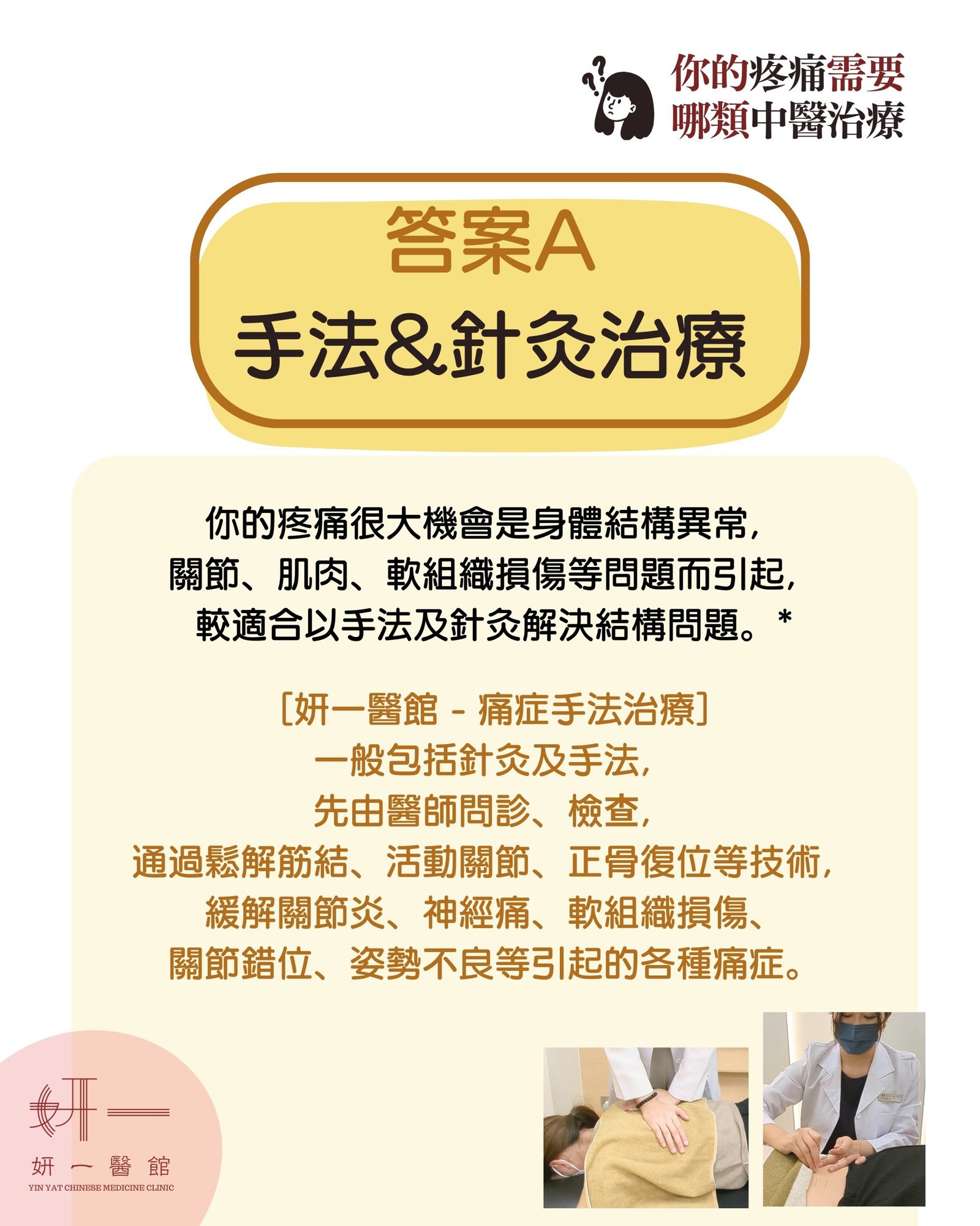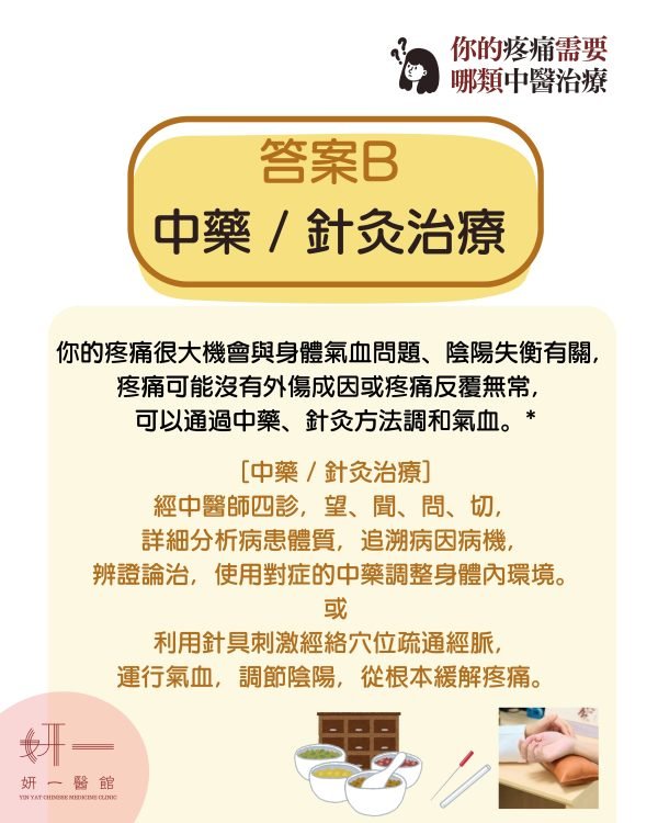想找中醫治療痛症,但又不清楚自己適合什麼治療嗎?
