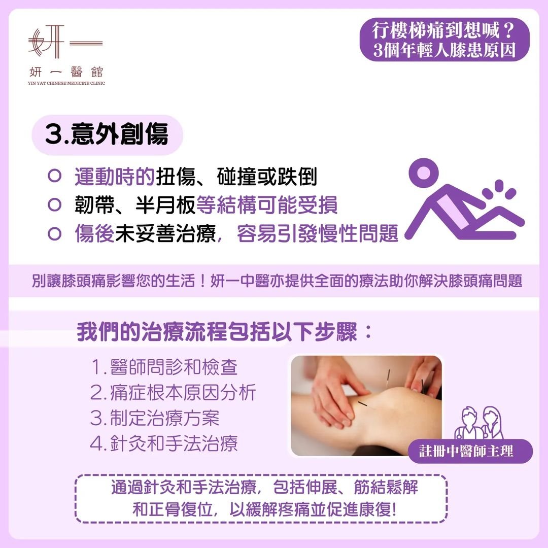 - 傷後未妥善治療,容易引發慢性膝頭痛問題