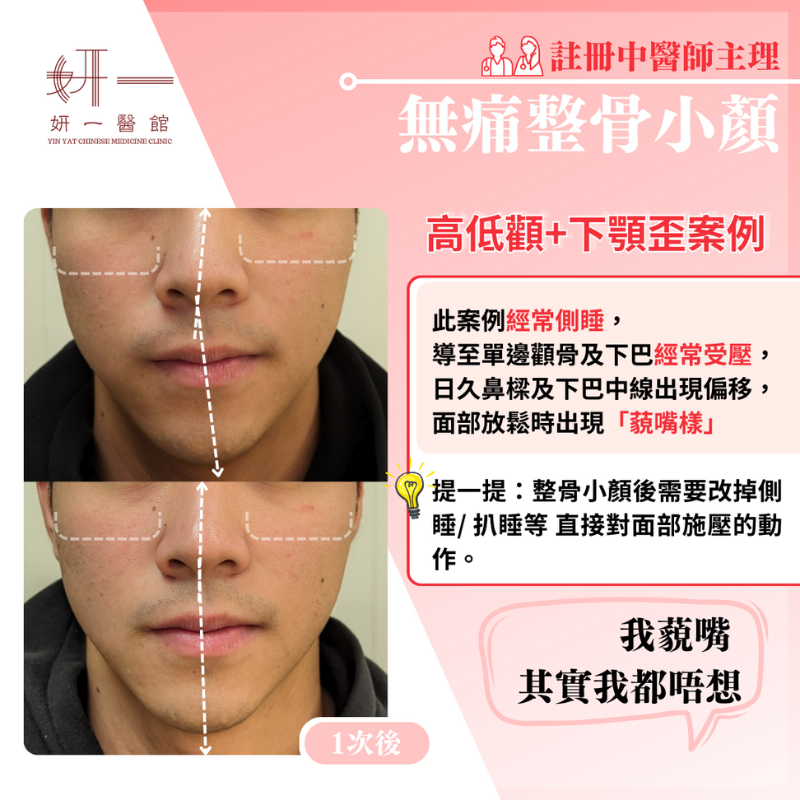 面對問題- 高低顴+下顎歪jockeytu32@gmail.com2024-08-01T12:05:03+08:00面對問題- 高低顴+下顎歪客戶面對的問題:長期側睡導致左右顴骨高低不平面部肌肉拉扯造成下巴偏移,呈「藐嘴樣」錯位顴骨向內側施壓,使鼻樑向一側傾斜整體面部輪廓不對稱,影響美觀療程效果:顴骨左右高低恢復平衡受壓鼻樑回歸中央位置下巴隨顴骨復位重新平衡,消除「藐嘴樣」整體面部輪廓對稱性顯著改善通過妍一醫館的整骨小顏術,有效矯正因長期側睡習慣導致的面部不對稱問題,全面提升面部美感與和諧,讓您重拾自信笑容! Related Projects 面對問題- 下顎移位 面對問題- 後天倒及面型過長 面對問題- 下巴歪 + 面部腫脹